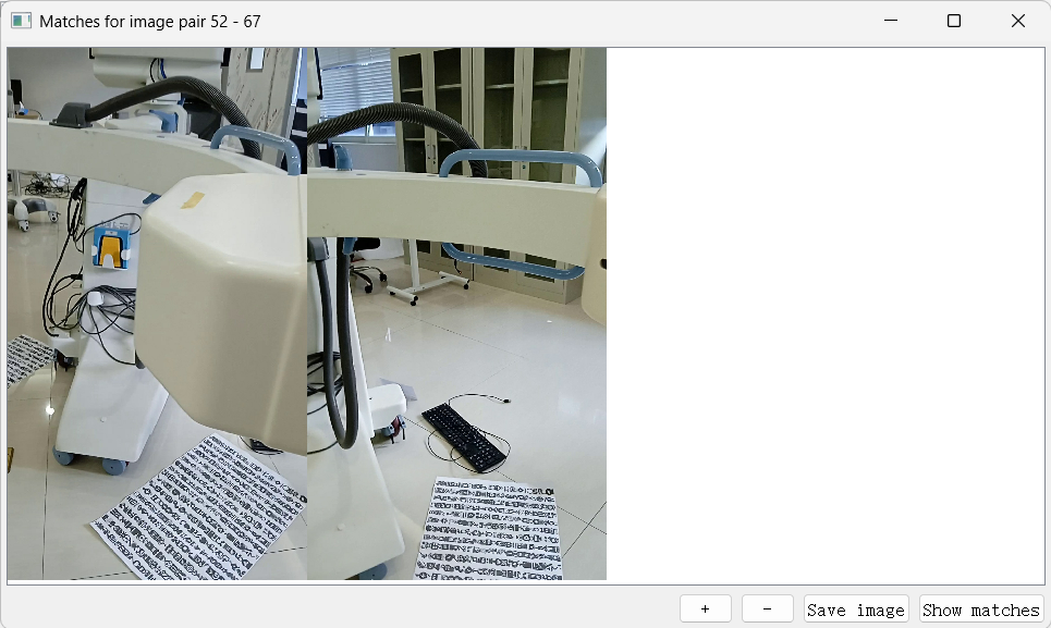 To mitigate (though not completely eliminate) this issue, I placed “signposts” — objects that are easy to match and contain many visual features — around the C-arm. These included a keyboard, a colored tag, and a piece of paper with multiple printed icons and logos (see my results for details).