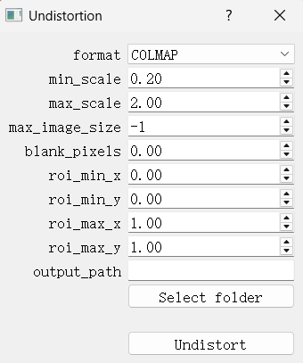 Step 8: Export models; if distortion is present, undistort images before export. For example, if the camera were not a pinhole but a fisheye type, COLMAP can undistort fisheye images to pinhole-like images for sparse reconstruction.